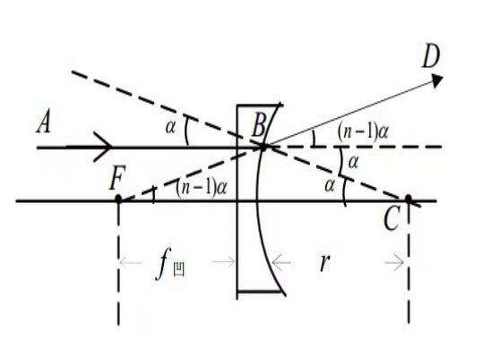 具有负的焦距,被用于发散一束平行光。平凹透镜则是一面是球面,一面为平面的。中间也薄于两边